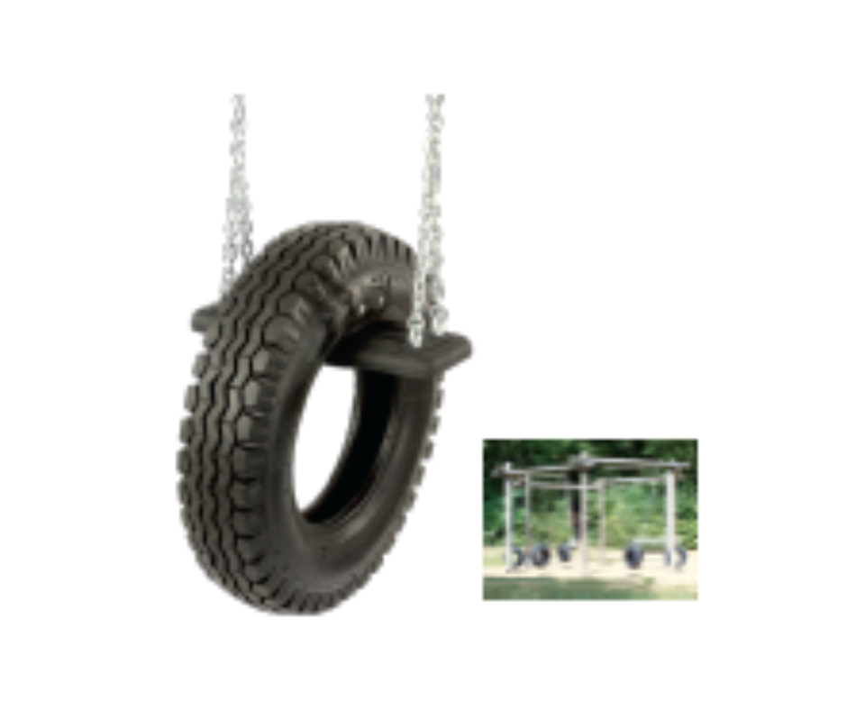 Realizat din anvelopă nouă, fără PAH (hidrocarburi aromatice policiclice), cu inserție textilă pentru rezistență sporită. Designul vertical al anvelopei oferă o experiență unică de balansare și aduce un plus de originalitate locului de joacă.
