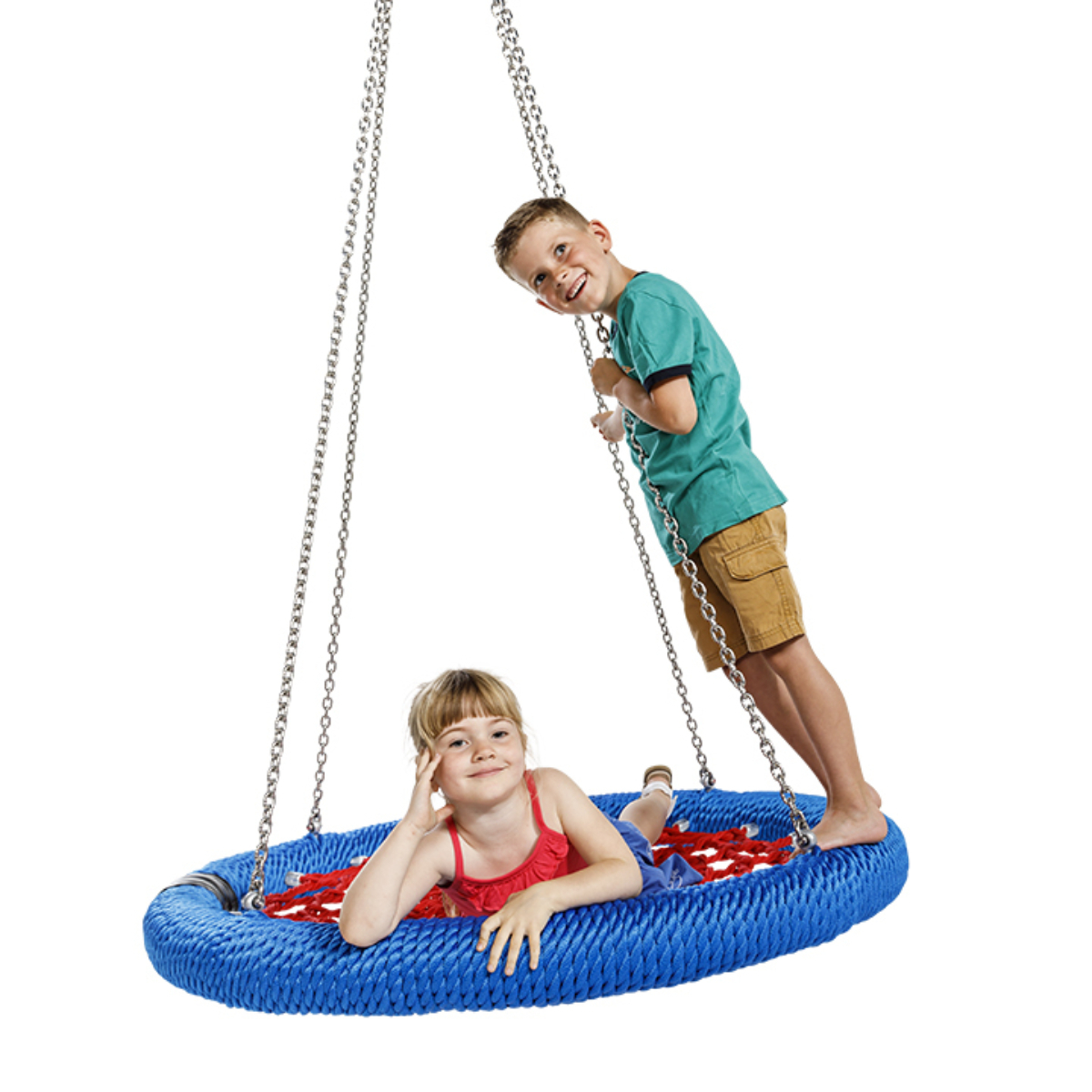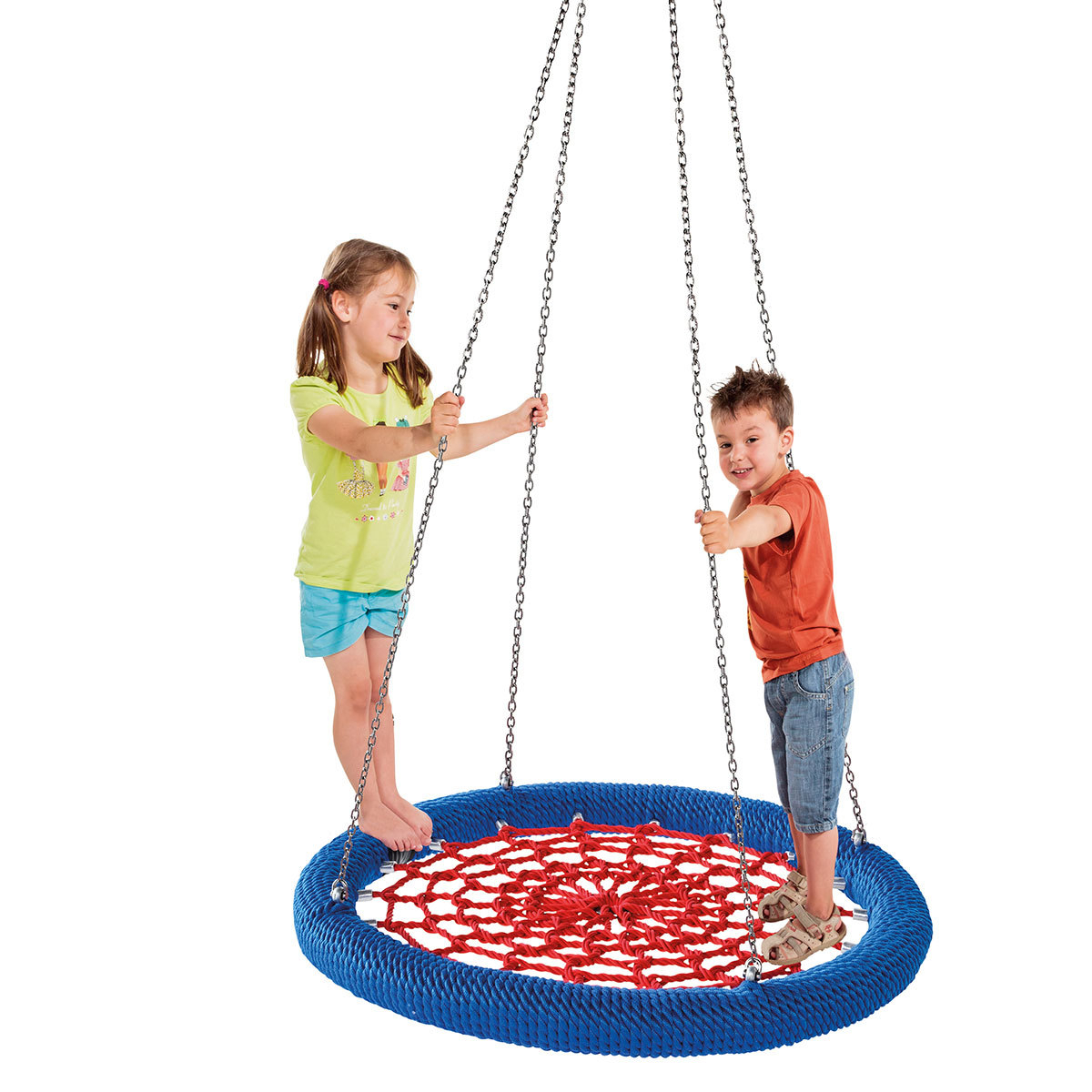 Leagăn cuib tip ROSETTE cu suspensie pe punct unic este un produs ideal pentru locuri de joacă comerciale, oferind o experiență de leagăn sigură și confortabilă. Disponibil în două dimensiuni (Ø 1000 mm și Ø 1200 mm), acest leagăn este confecționat cu un inel din otel acoperit cu cordon shock-absorbing și sfoară de suspensie din armored rope (Ø 16 mm). Fiecare detaliu al leagănului este gândit pentru a oferi siguranță și durabilitate, iar designul său unic permite o utilizare ușoară și sigură.