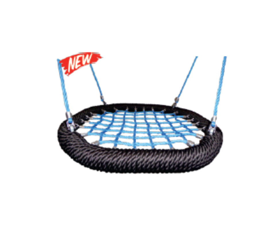 Construit dintr-un inel metalic multipart, îmbrăcat în frânghie rezistentă, și cu plasă interioară (tip coș) realizată din frânghie cu miez de oțel, acest leagăn asigură un grad ridicat de confort și siguranță.