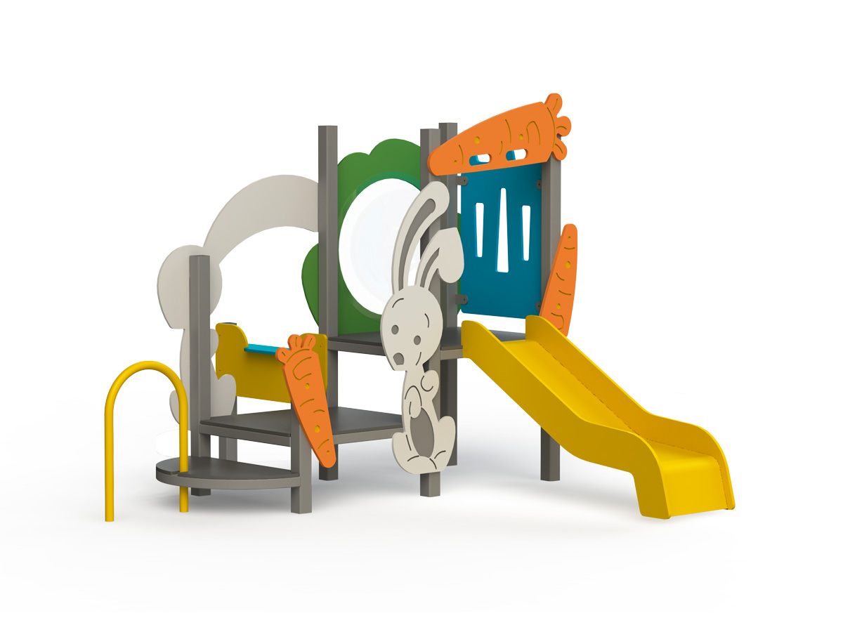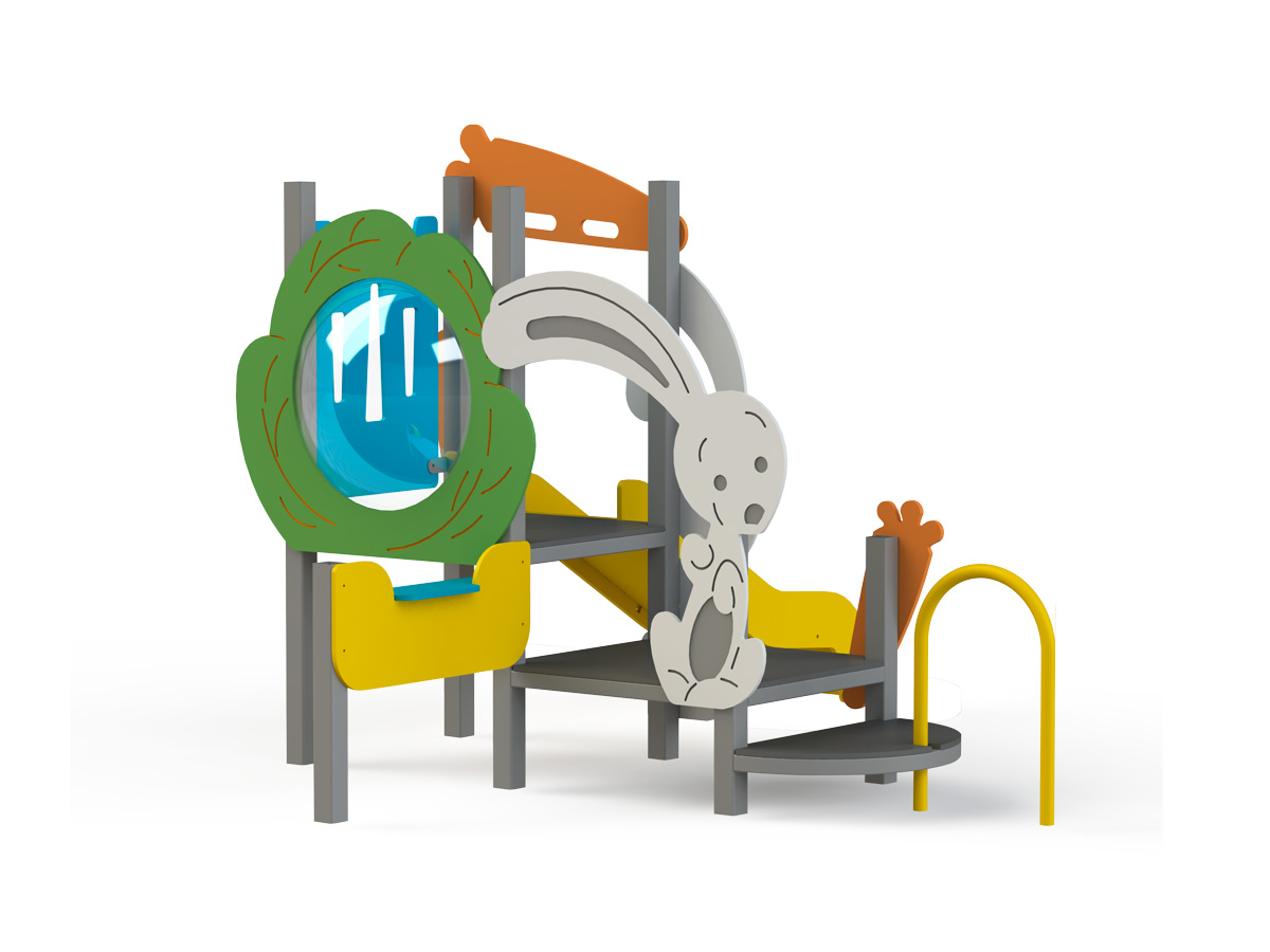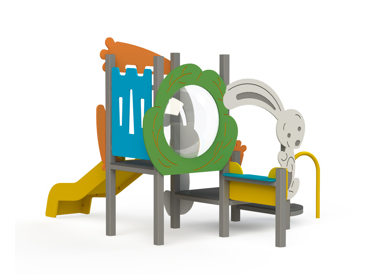 Echipamentul de joacă multifuncțional tip GFT01 este destinat copiilor cu vârste între 0 și 6 ani, oferind un spațiu sigur, colorat și educativ pentru dezvoltarea motrică timpurie. Designul compact, dar atractiv, îl face ideal pentru grădinițe, spații urbane, locuri de joacă rezidențiale sau interioare.
