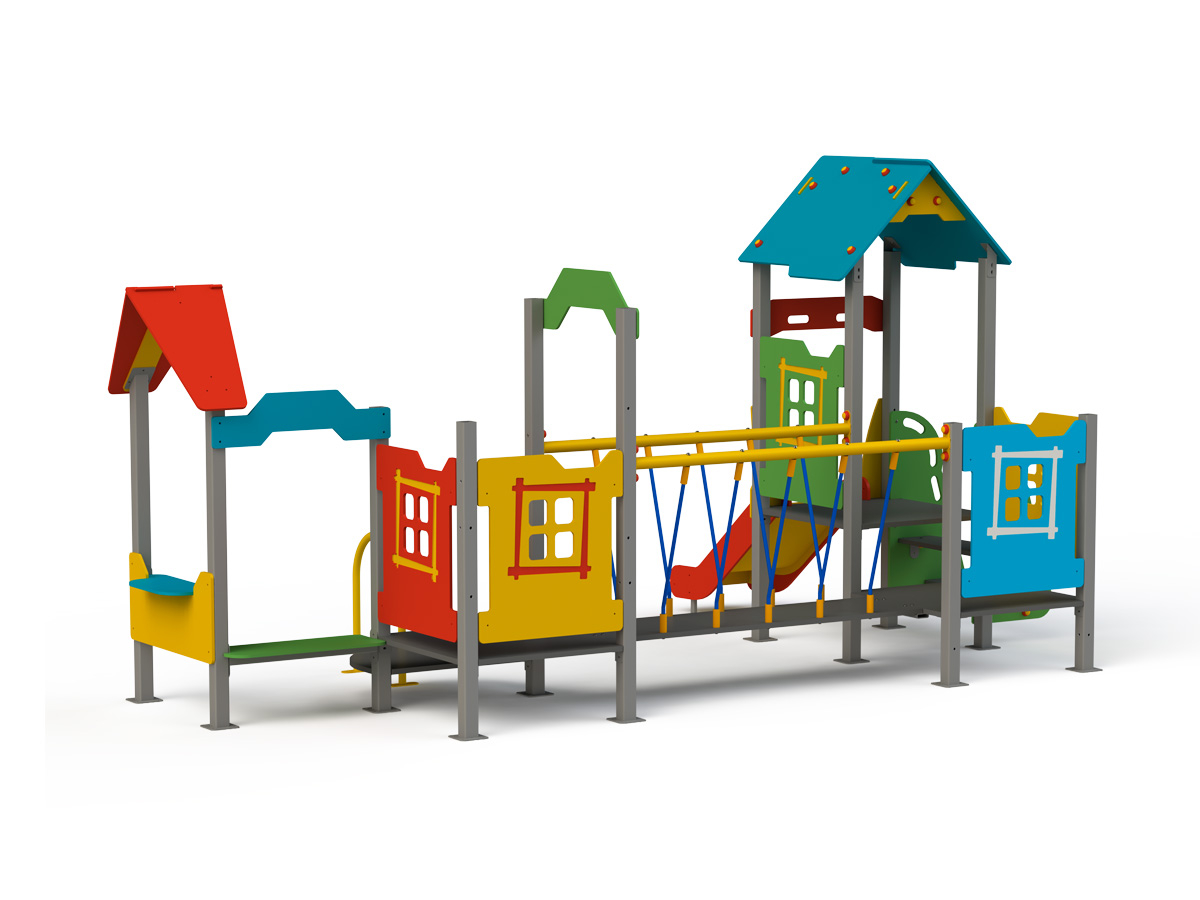 Echipamentul de joacă multifuncțional tip GPL07 este un echipament de joacă de mari dimensiuni destinat copiilor cu vârsta între 0 și 6 ani. Poate fi utilizat simultan de până la 10 copii, oferind multiple activități recreative într-un mediu sigur. Este ideal pentru locuri de joacă publice, grădinițe sau spații comunitare, datorită durabilității și siguranței oferite.
