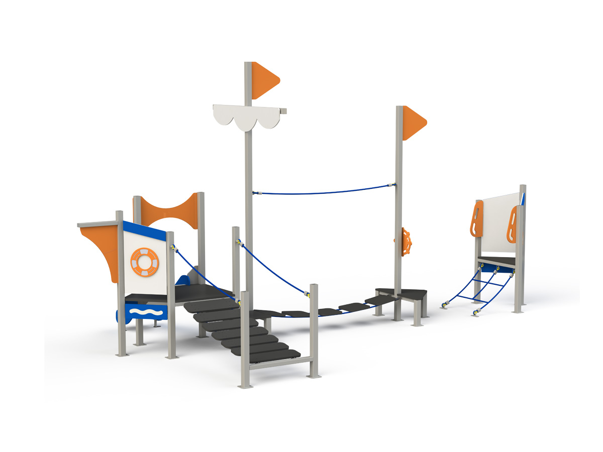 - Materiale utilizate: Tuburi și plăci metalice (cu protecție anticorozivă și vopsea UV), panouri HDPE și HEXA, funii PP