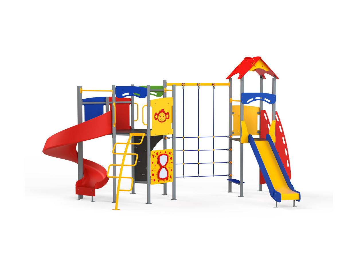 Echipamentul de joacă multifuncțional tip GP59 este un echipament de joacă destinat copiilor cu vârste între 3 și 12 ani, conceput pentru a stimula activitatea fizică, coordonarea motorie și interacțiunea socială. Modulul este realizat din materiale durabile, rezistente la uzură, intemperii și vandalism. Acesta permite multiple activități – cățărare, alunecare, urcare – și este ideal pentru amplasarea în spații publice precum parcuri, grădinițe, curți școlare sau zone rezidențiale.
