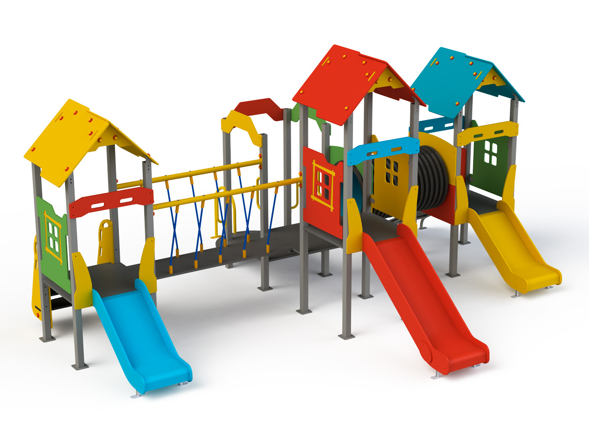 Echipamentul de joacă multifuncțional tip GPL13 este special conceput pentru copii cu vârste între 0 și 6 ani, oferind un spațiu sigur și atractiv pentru joacă activă. Designul său extins permite activități precum cățărat, explorare și alunecare, încurajând dezvoltarea fizică și socială a celor mici. Ideal pentru grădinițe, parcuri și spații recreaționale intens utilizate, GPL13 îmbină durabilitatea cu siguranța, respectând cele mai stricte standarde europene.