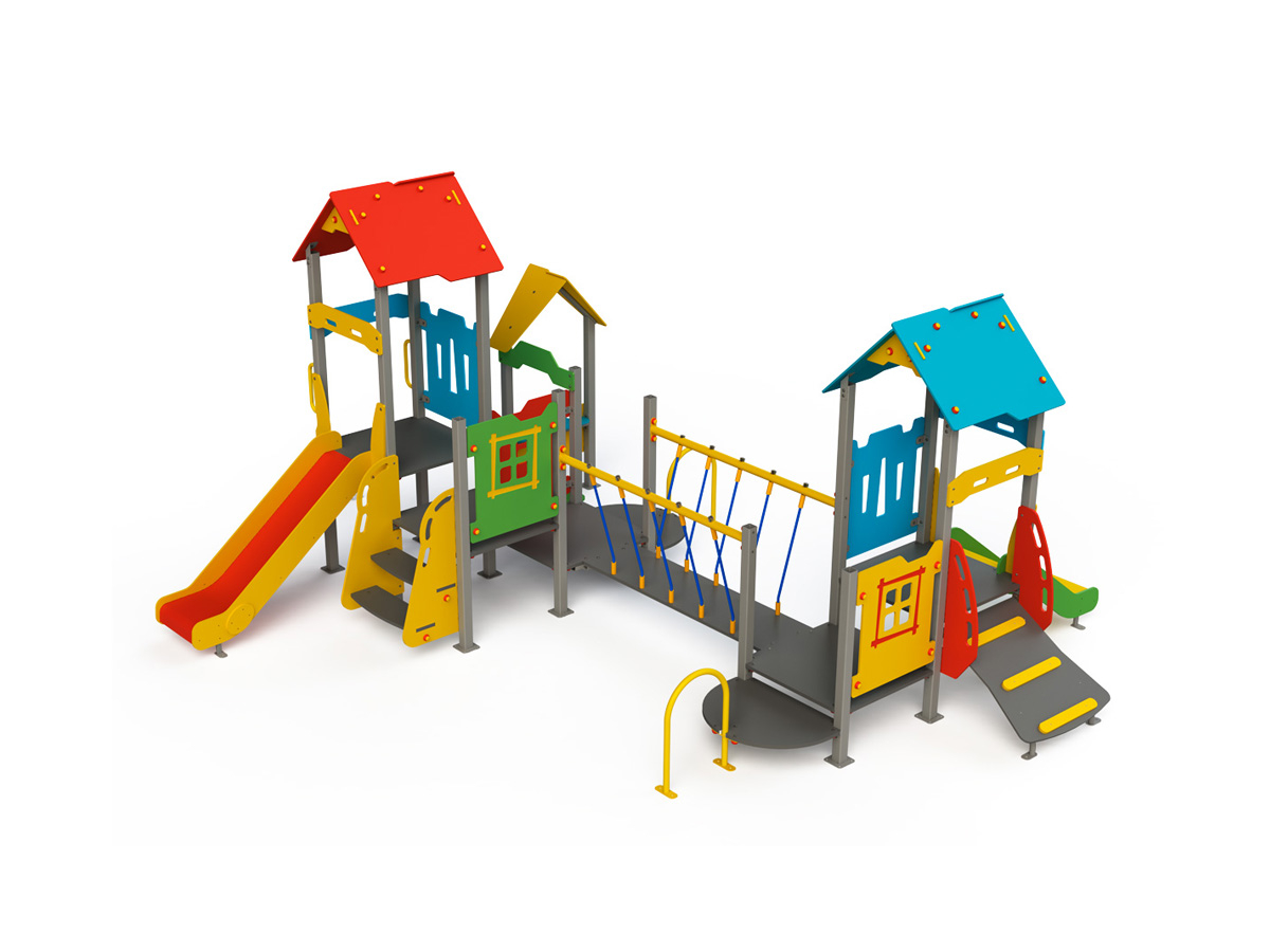 Echipamentul de joacă multifuncțional tip GPL16 este un ansamblu de joacă conceput pentru a stimula imaginația, dezvoltarea motorie și interacțiunea socială în rândul copiilor cu vârste între 0 și 6 ani. Potrivit pentru până la 12 copii simultan, acest echipament îmbină durabilitatea cu siguranța maximă și designul atractiv. Structura este ideală pentru spații publice, grădinițe, parcuri și zone rezidențiale.