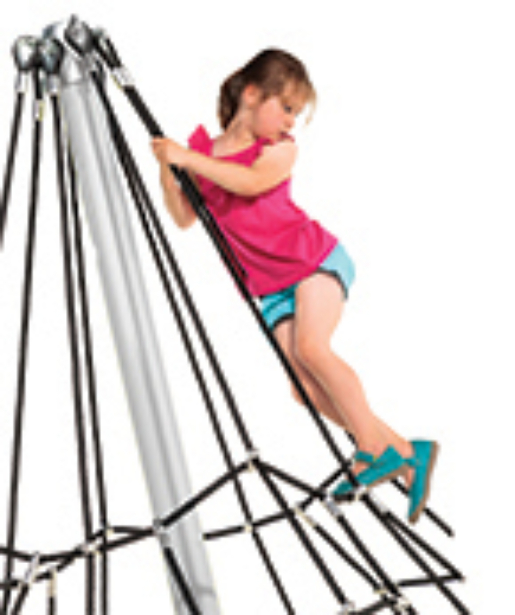 Plasă piramidală din sfoară armată tip ESCALADĂ - 2,7 m oferă o opțiune de escaladă sigură și captivantă, perfectă pentru locuri de joacă publice.