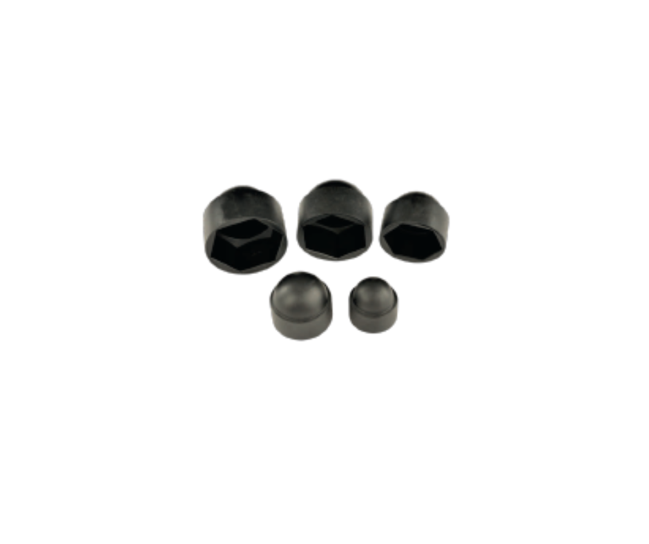 Capace pentru șuruburi, realizate din polietilenă (PE), în formă de piuliță acoperitoare, ideale pentru montarea pe șuruburi hexagonale sau piulițe. Culoarea standard este negru, oferind protecție împotriva coroziunii și un aspect finisat, curat.