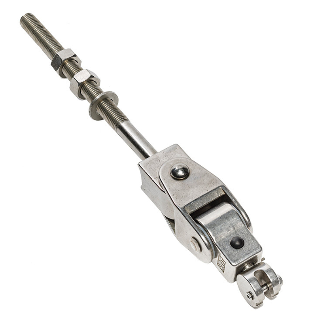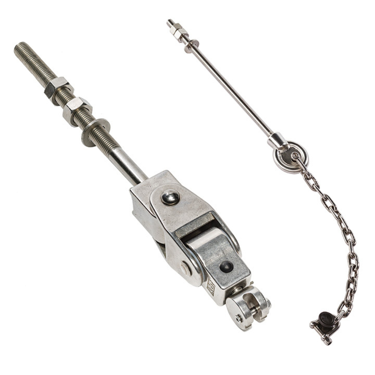 Cârlig din oțel inoxidabil pentru leagăne de grup tip PREMIUM este o soluție robustă și sigură pentru leagănele de grup. Acesta este fabricat din oțel inoxidabil turnat, având un sistem de articulație cardanică și rulmenți din nylon care asigură o mișcare lină și silențioasă. Este potrivit atât pentru lemn rotund, cât și pentru lemn pătrat, oferind o flexibilitate excelentă în montaj. Cârligul este prevăzut cu o tijă filetată (M16 x 220 mm) pentru instalare, iar lanțul de siguranță este inclus, cu posibilitatea de achiziționare separată.
