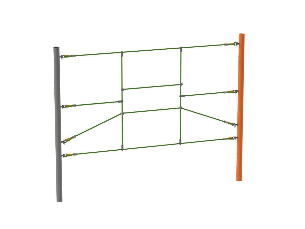 Structură de escaladă tip GCB06 este conceput pentru a oferi un grad mai ridicat de provocare, datorită înălțimii sale de cădere liberă de 150 cm. Ideal pentru spații de joacă moderne care promovează dezvoltarea motrică și curajul în siguranță.