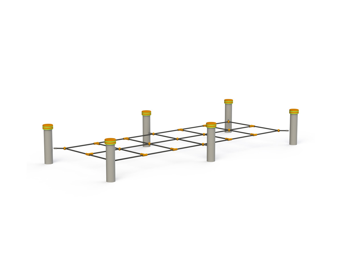 Structura de escaladă tip UJ01 este conceput pentru a încuraja activitatea fizică și dezvoltarea abilităților motorii ale copiilor, având un design compact și rezistent, perfect pentru parcuri și spații de joacă urbane. Cu o provocare interesantă, „traversarea tuturor pătratelor fără a atinge frânghiile”, acest echipament poate fi utilizat de 2 copii simultan.